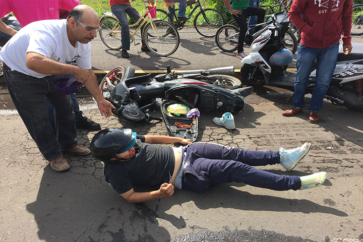 NOTICIAS 20/07/2015Mujer derrapa en su motocicleta, iba a exceso de velocidad
