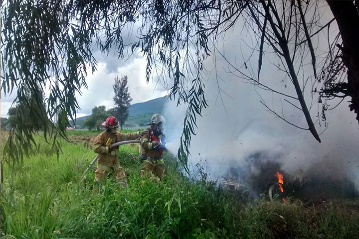 El reporte del incidente se dio minutos después de las 13:00 horas sobre la citada rúa a la altura de kilómetro 3, donde se informaba un vehículo ardía en llamas, por lo que los tragahumos de in... Ver más...