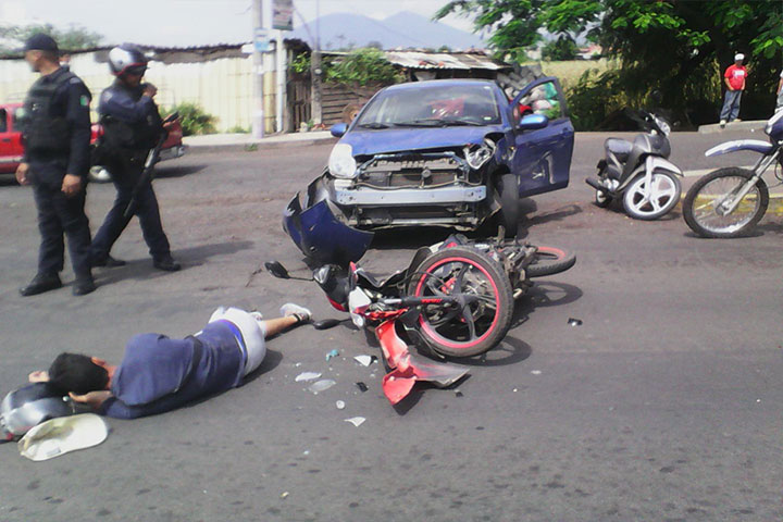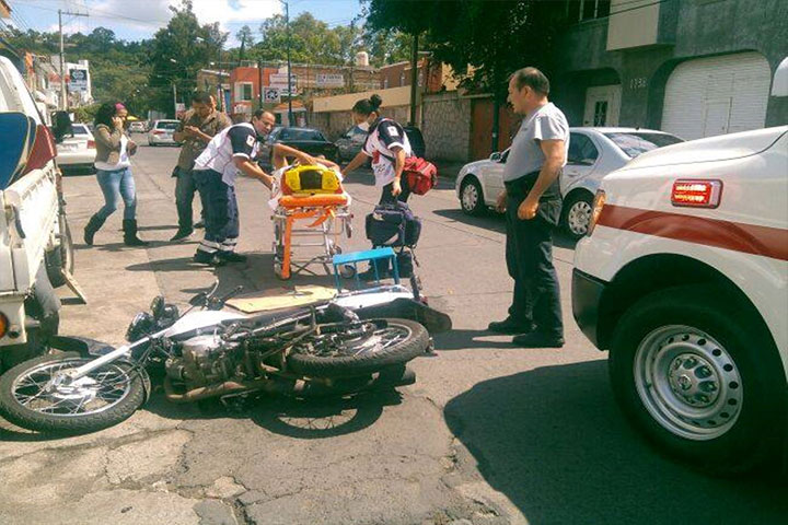 El conductor de una motocicleta sufrió algunos golpes en su humanidad luego de chocar de forma violenta contra un auto, acción que movilizó a los cuerpos de emergencia así como de Tránsito y Vialidad municipal, quienes aseguraron ambos automotores y los pusieron a disposición de las autoridades correspondientes.