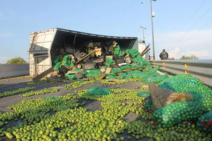 NOTICIAS 30/06/2015Vuelca un camión con cargamento de limón; chofer resulta levemente heridoUn camión que trasladaba varias toneladas de limón volcó en la carretera Apatzingán-Cuatro Caminos, tras lo cual el chofer quedó levemente herido; luego del accidente hubo rapiña de los curiosos.