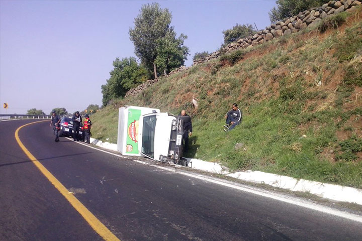 Lo anterior trascendió durante el trabajo noticioso. Se supo que el automotor volcado es de la marca Kenworth, color rojo, con caja blanca y con placas de circulación 097-EK8.