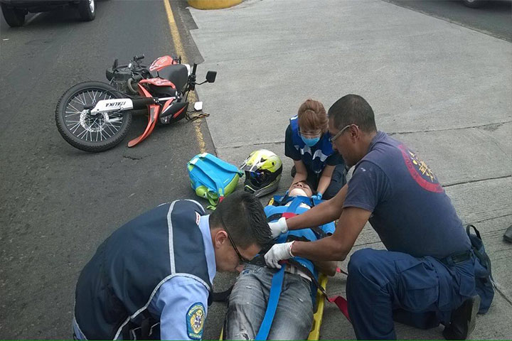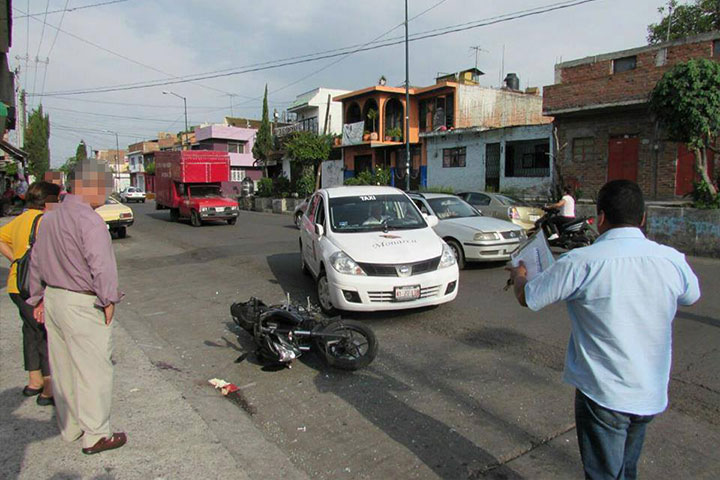 Un motociclista resultó lesionado de una rodilla, luego de que la unidad que tripulaba fuera impactada por un camioneta, en esta población de Pátzcuaro.