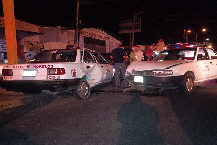 Un trabajo del volante resultó levemente lesionado cuando la unidad que tripulaba chocó contra otro taxi, en esta ciudad de Zamora.