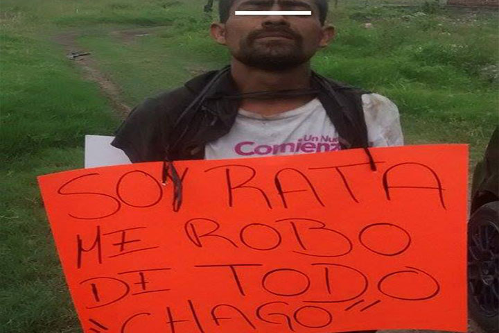 NOTICIAS 25/06/2015Vecinos Vigilantes detienen a ladrón de cobre en flagranciaColonos organizados del grupo antirobos denominado "Vecinos Vigilantes ", capturaron a un presunto ladrón en el interior de un domicilio, con objetos de valor y tubería de cobre, al cual después exhibieron con un letrero en varias calles de esta ciudad.