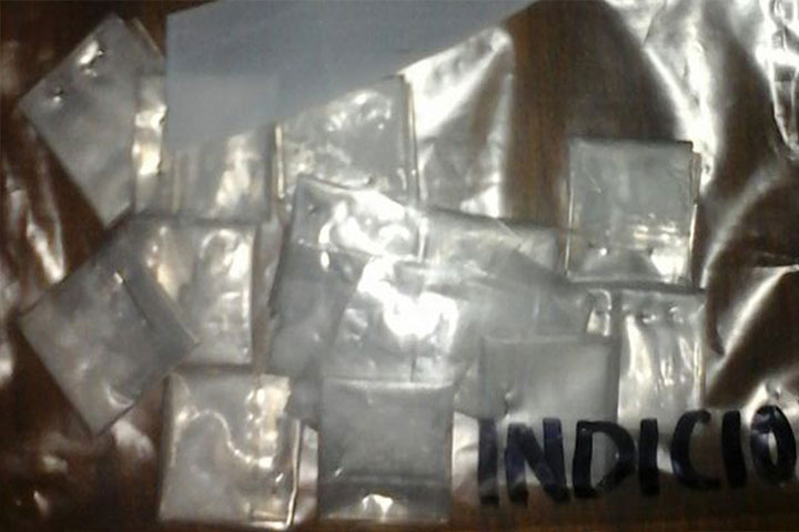 Elementos del Fuerza Ciudadana del Municipio de Puruándiro, decomisaron aproximadamente 15 dosis de una sustancia blanca, con características de la droga conocida como cristal.