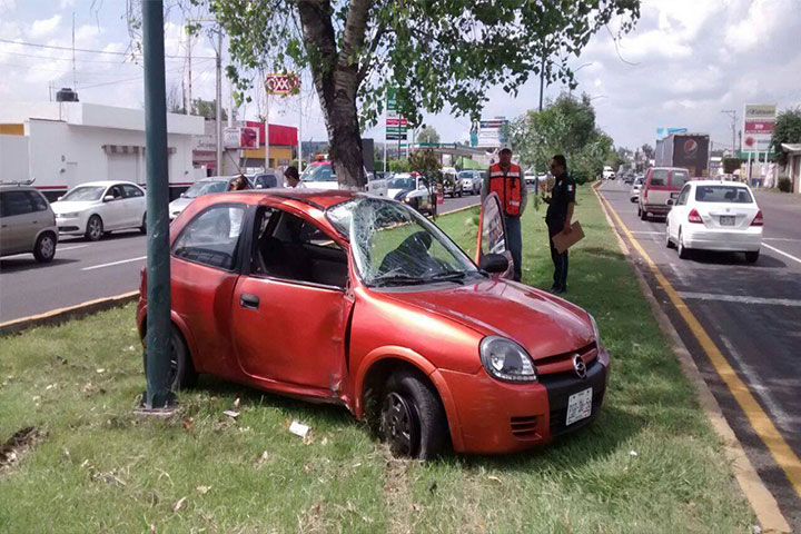 Gran susto sufrió una familia cuando el automóvil compacto en el que viajaba perdió el control y se estrelló contra un poste del alumbrado público, ubicado en el camellón central de la carretera Morelia-Salamanca.