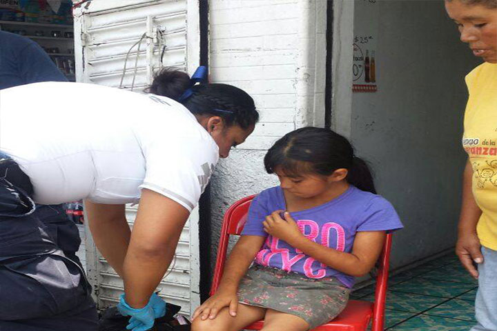 El hecho fue alrededor de las 14:00 horas de este jueves casi en la esquina con la calle 5 de Mayo, hasta donde se trasladaron los rescatistas para ayudar a la paciente.