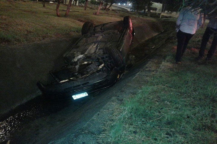 Solamente daños materiales dejó la volcadura de un automóvil en el Libramiento República de esta ciudad, hasta donde se trasladaron los bomberos municipales para realizar las maniobras de auxilio.