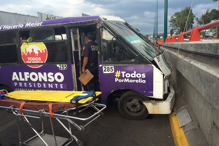 Un microbús de la Ruta Prados Verdes chocó contra un muro del puente del Libramiento Norte frente a la entrada de la colonia Solidaridad, en esta capital, tras lo cual dos pasajeros resultaron lesionados; todo pasó cuando al camión le fallaron los frenos, dijo el chofer.