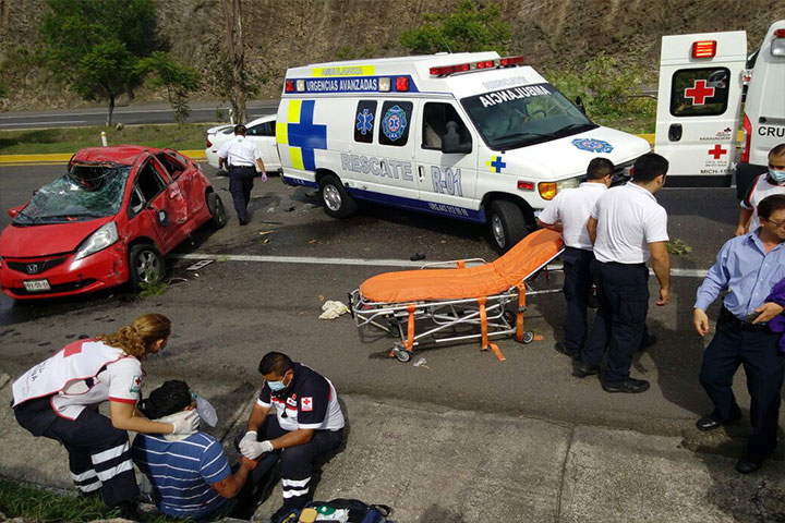 Un vehículo compacto volcó y terminó destrozado sobre la Autopista Siglo XXI, en el tramo carretero Morelia - Pátzcuaro, accidente que dejó lesionado al tripulante, quien posteriormente fue atendido por bomberos estatales y paramédicos de la Cruz Roja.