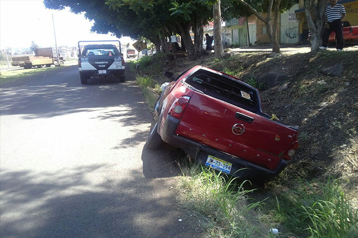 Una camioneta cayó a una zanja luego de que su conductor perdió el control del volante al momento de tronarse un neumático cuando circulaba sobre la calle Madero, perteneciente a esta ciudad, justo a espaldas de la base de Bomberos Municipales.