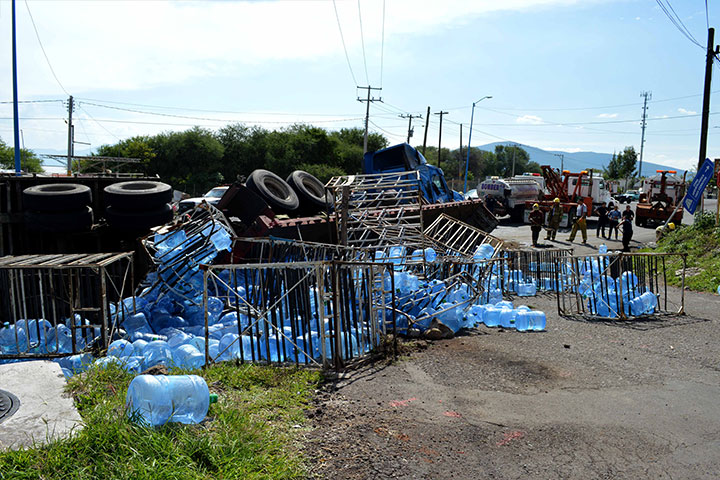 NOTICIAS 03/06/2015Vuelca tráiler que transportaba agua purificada