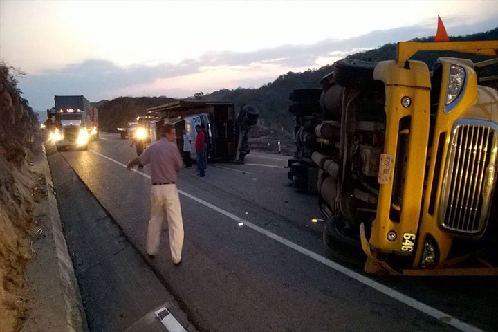 Un tráiler "nodriza" volcó la mañana de este martes al tomar una curva en la autopista Siglo XXI, en este municipio de Arteaga, tras lo cual varios de los automotores que transportaba resultaron dañados, según los datos obtenidos durante la labor reporteril. No hubo víctimas humanas que lamentar.