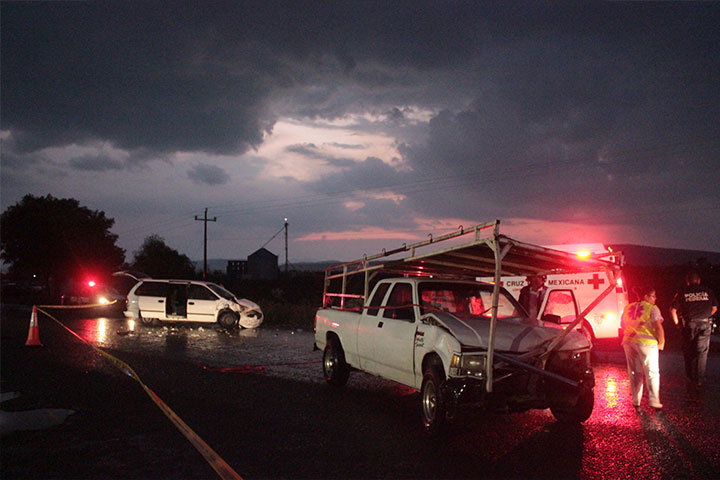 Diez miembros de una familia resultaron lesionados, cuando el vehículo en el que se trasladaban chocó de frente contra otro automotor, cuyo chofer también quedó herido, de acuerdo con la información recabada en el lugar de los hechos.