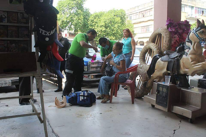 Una mujer de la tercera edad resultó lesionada después de caer de su propia altura al caminar por una rampa en el pasaje Morelos, en el centro de esta ciudad, afortunadamente la señora no requirió hospitalización, a decir de los socorristas que la auxiliaron.