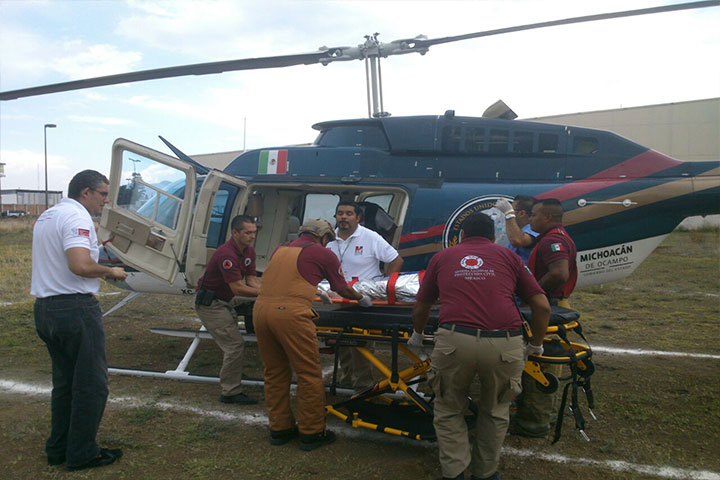 NOTICIAS 24/05/2015Trasladan vía aérea a sahuayense que se lesiono mientras cargaba una carabina