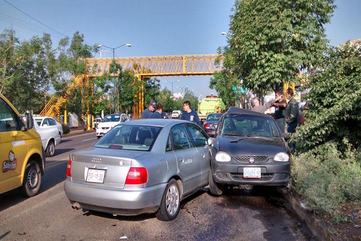 Con base en los datos obtenidos en la zona, la colisión fue entre un Chevrolet, Chevy, color acero, con placas guanajuatenses GTF-1442 y un Audi, color plata, con matrícula PSS-1550.