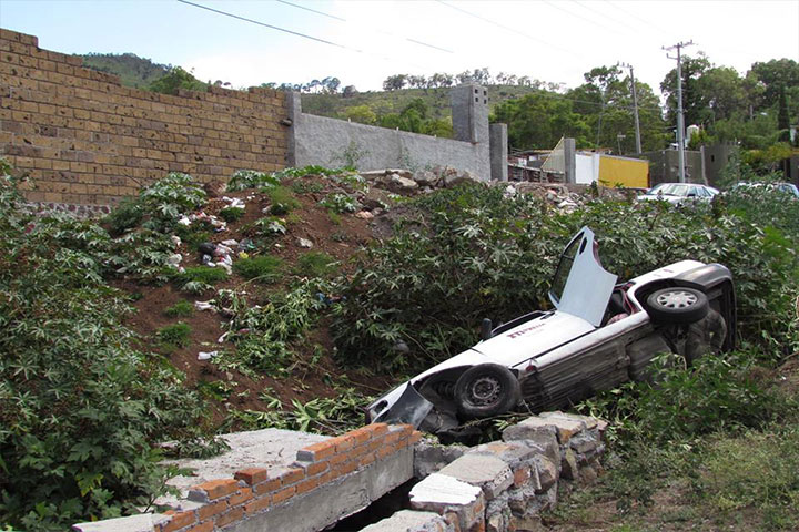 Un alcoholizado conductor resultó ileso y sólo sufrió crisis nerviosa cuando su camioneta cayó al fondo de una cuneta ubicada a la orilla de la carretera federal Apatzingán-Buenavista, a la altura de la comunidad El 25.