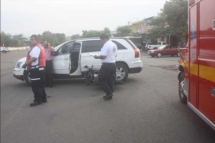 Lesiones leves padeció un motociclista al estrellarse contra la puerta de un automóvil sobre la avenida Corregidora, a la altura de la colonia Miguel Hidalgo, de esta ciudad de Apatzingán.