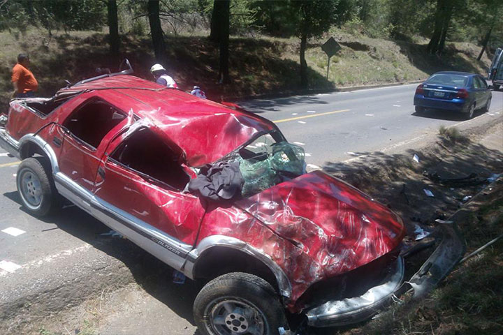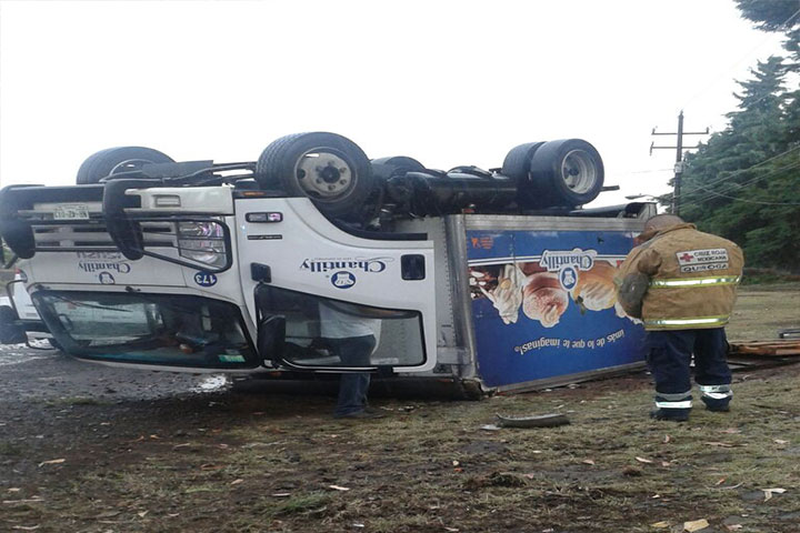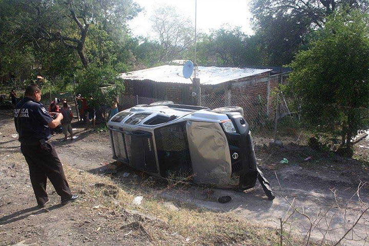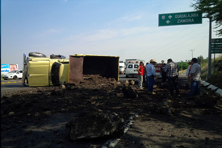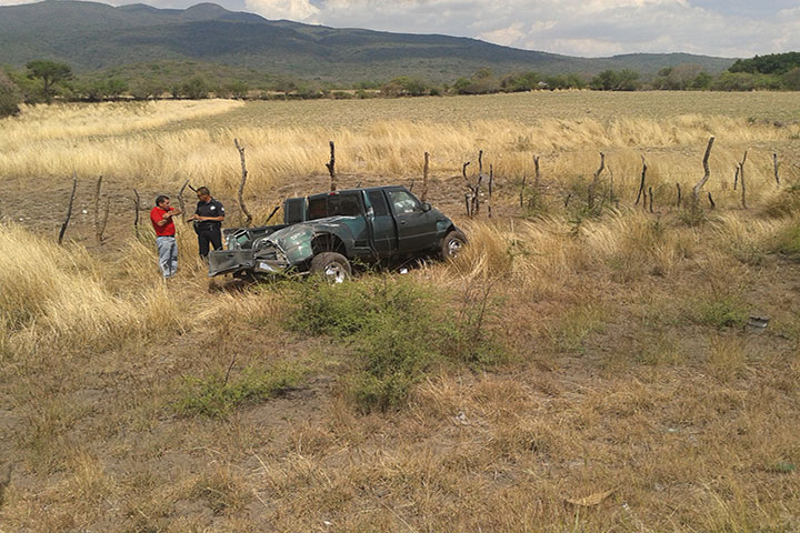 Dos comerciantes se salvaron de morir al volcar la camioneta donde viajaban, accidente que movilizó a los paramédicos de Protección Civil de este municipio de Ecuandureo, así como de la ciudad de Zamora.