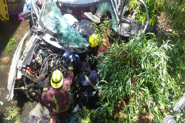 Un empleado de la empresa Autopistas de Michoacán resultó malherido después de que la camioneta que manejaba se saliera del camino, chocara contra un árbol y cayera a un desnivel de aproximadamente cinco metros de altura para quedar en un riachuelo. Una mujer que acompañaba al chofer resultó prácticamente ilesa.