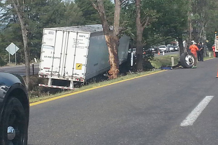 Un tráiler terminó con el frente completamente destrozado, luego de que se saliera del camino y chocara contra un árbol, esto en la autopista Siglo XXI, a la altura de este municipio, según los datos obtenidos por este medio de comunicación. Solamente hubo daños materiales.