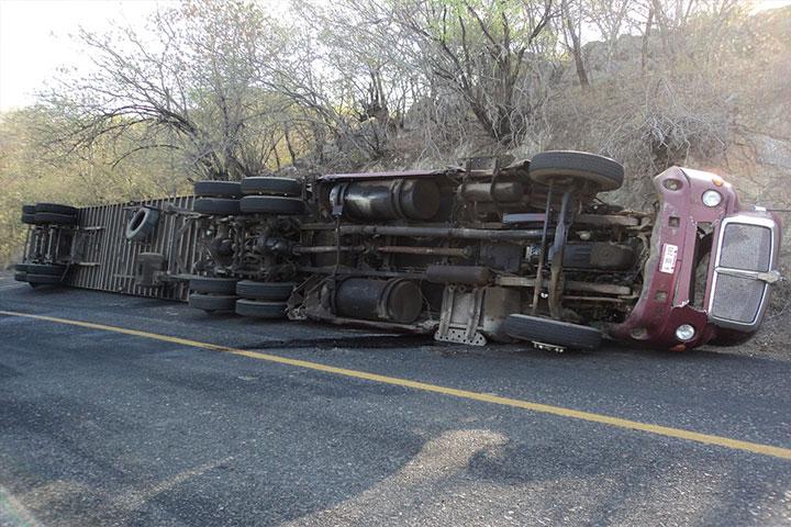 Una veloz camioneta volcó sobre el kilómetro 158 del tramo carretero Tiquicheo-Huetamo, en las inmediaciones del sitio conocido como La Tiringucha, donde el conductor resultó lesionado, pero cuando un grupo de autodefensas llegó al sitio para brindarle ayuda únicamente encontró el carro siniestrado y rastros de sangre.