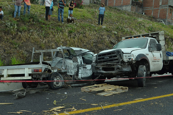 Los conductores de dos vehÃculos resultaron lesionados de consideración por lo que tuvieron que ser hospitalizados, luego de que un camión que transportaba mercancÃa de abarrotes, se volcara en la llamada Curva del Diablo y al desplazarse sobre el costado izquierdo, impactó una camioneta que se precipitó a un barranco.