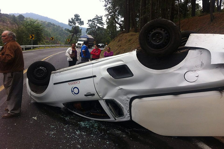 NOTICIAS 30/04/2015Choque y volcadura en la curva del diablo; 2 heridos