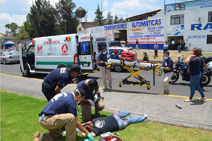 Para medir los tiempos de reacción de las corporaciones de auxilio y policiales, el Centro Regulador de Urgencias Médicas (CRUM) realizó el simulacro de un accidente a la altura del distribuidor vial de la salida a Charo, en esta capital, donde la dramatización giró en torno a una joven que habÃa sido atropellada.