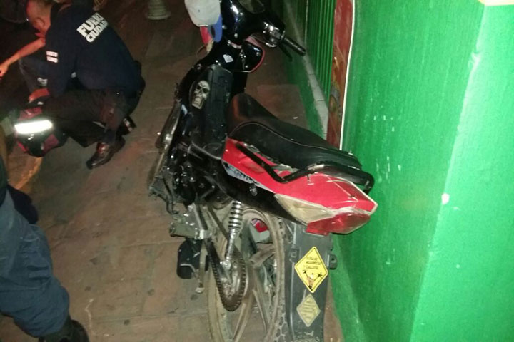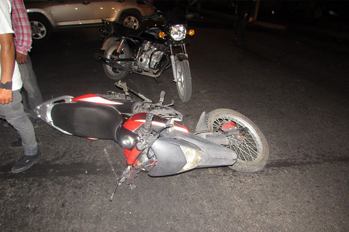 Un joven motociclista que viajaba a acompañado de su señora madre, resultó lesionado al impactarse contra una camioneta la noche del pasado sábado, en tanto la mujer afortunadamente resultó ilesa según informó la policía.