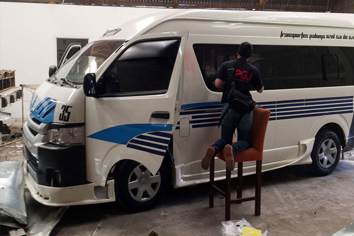 Una combi de la Ruta Paloma Azul fue asegurada, al igual que dos vehículos que presentaban alteraciones, en un cateo realizado por la Procuraduría General de Justicia (PGJ) en una bodega, situada en las inmediaciones de la colonia Gertrudis Sánchez, de esta ciudad, informó la propia dependencia.