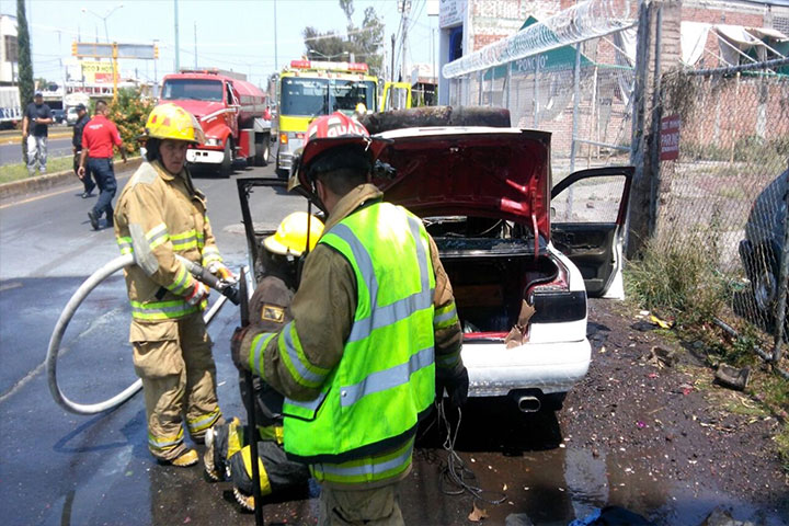 Un taxi fue reducido a chatarra, luego de que fue consumido en su totalidad por las llamas, cuando el sistema eléctrico de la unidad sufrieran un corto, acción que provocó que los Bomberos Municipales y Protección Civil acudieran de inmediato a sofocar el fuego.