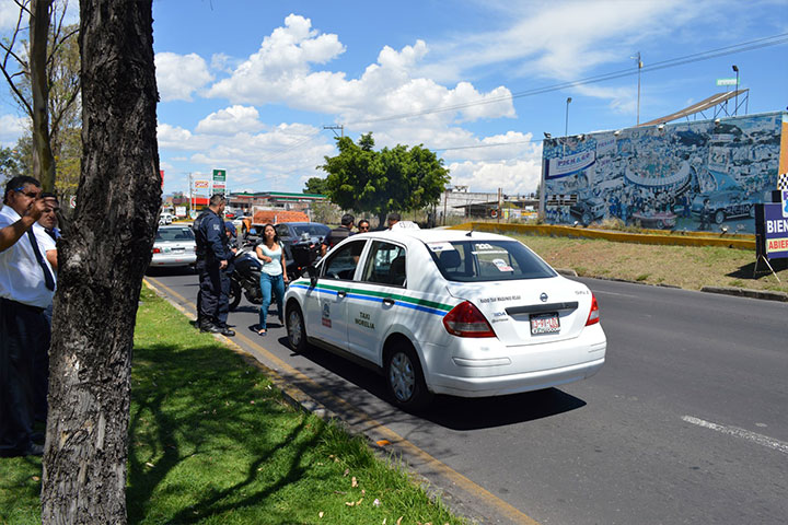 Una mujer sufrió heridas leves tras ser impactada por un taxi del sitio "Máquinas Rojas", el cual circulaba sobre el Periférico Revolución, a la altura de la colonia San Rafael. Durante la cobertura periodística se pudo apreciar que cerca de donde sucedió el incidente se encuentra un puente peatonal.