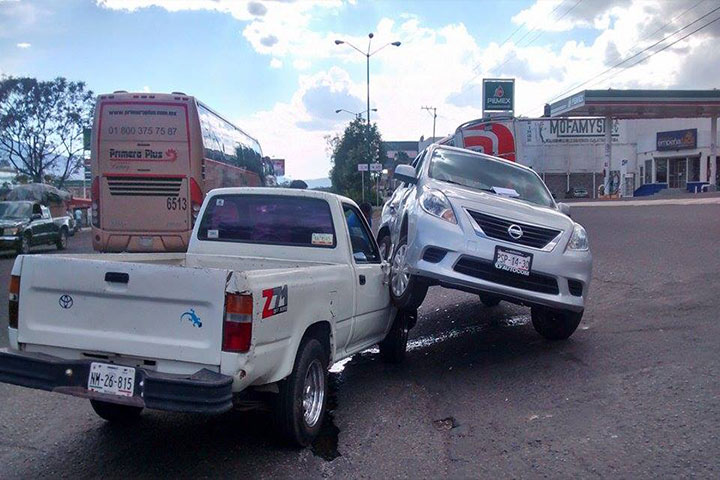 Solamente daños materiales dejó como saldo un choque entre un auto propiedad del Gobierno del Estado y una camioneta particular; suceso registrado sobre la Avenida Madero Poniente, de esta capital, mismo que al parecer ocurrió cuando la unidad oficial le cortó la circulación al otro automotor para entrar a una gasolinera, explicó la Policía.