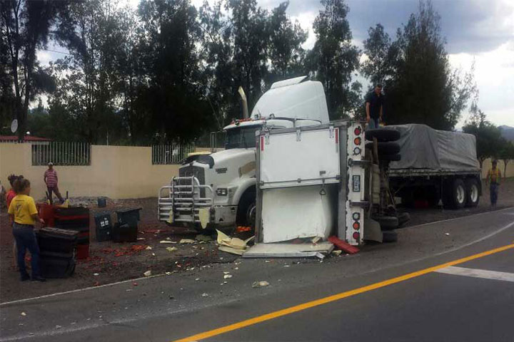 La tarde de este viernes, se registró un aparatoso accidente, donde el conductor de una camioneta que transportaba pollos estuvo a punto de morir al volcar su unidad y finalmente terminar impactada contra un tráiler; acontecimiento que movilizó a los cuerpos policíacos y de emergencia.