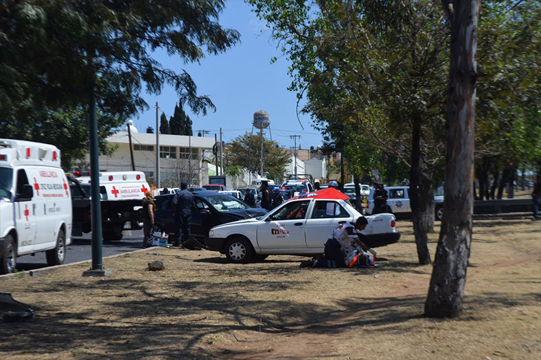 Dos lesionados fue el saldo que dejó la colisión de un auto particular contra un taxi, accidente ocurrido la tarde de este domingo sobre el Periférico Revolución, donde los policías de la Fuerza Ciudadana (FC) y paramédicos de la Cruz Roja (CR) auxiliaron a los afectados.