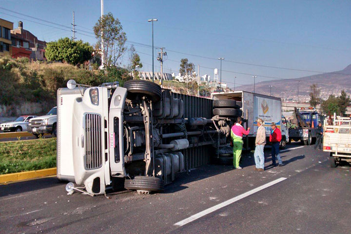 Un camión tipo rabón volcó sobre el Libramiento Norte, de esta ciudad de Morelia, tras lo cual solamente hubo daños materiales, a decir del reporte de las autoridades policiales.