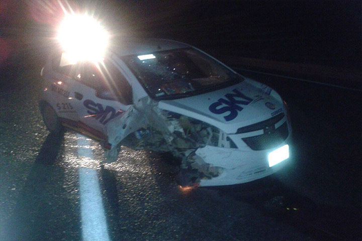 Dos empleados de la televisora satelital Sky resultaron lesionados después de que el auto en el que se trasladaban chocara por alcance contra un tráiler, tras lo cual la pesada unidad continúo con su camino, mientras que los pacientes fueron auxiliados por los paramédicos de Rescate y Salvamento.