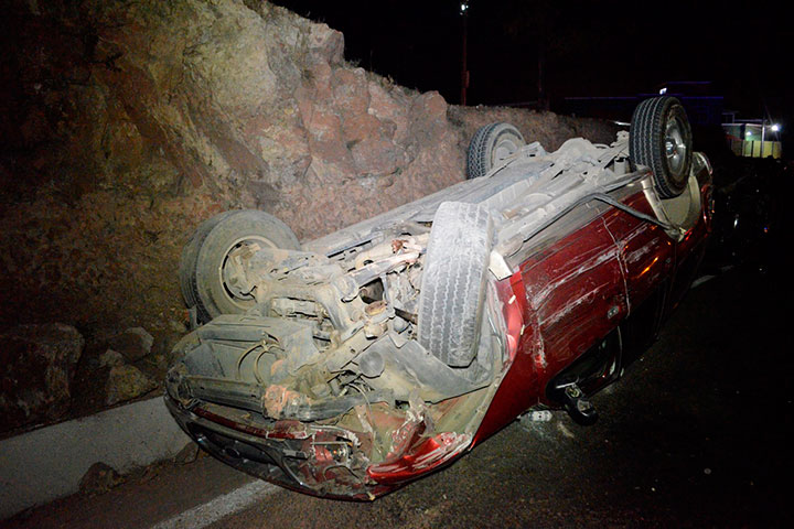 NOTICIAS 28/02/2015De milagro, sobreviven a aparatosa volcadura