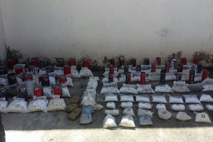 Dos sujetos fueron detenidos en una movilización de la Policía Federal realizada en esta ciudad de Uruapan, en la cual se les incautó un millonario cargamento del narcótico conocido como "crystal", pues en 44 extintores de metal traían ocultos 175 kilos de dicho enervante, mismo que de acuerdo con las autoridades federales tiene un valor en el mercado de las drogas de aproximadamente 43 millones 750 mil pesos; a los indiciados también se ... Ver más...