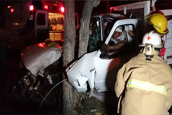El chofer de una camioneta resultó seriamente lesionado luego de quedar prensado en el interior de su unidad, cuando ésta se estrelló contra un árbol, sobre la avenida Autonomía Universitaria, de este puerto de Lázaro Cárdenas, de acuerdo con los datos recabados durante la labor reporteril.