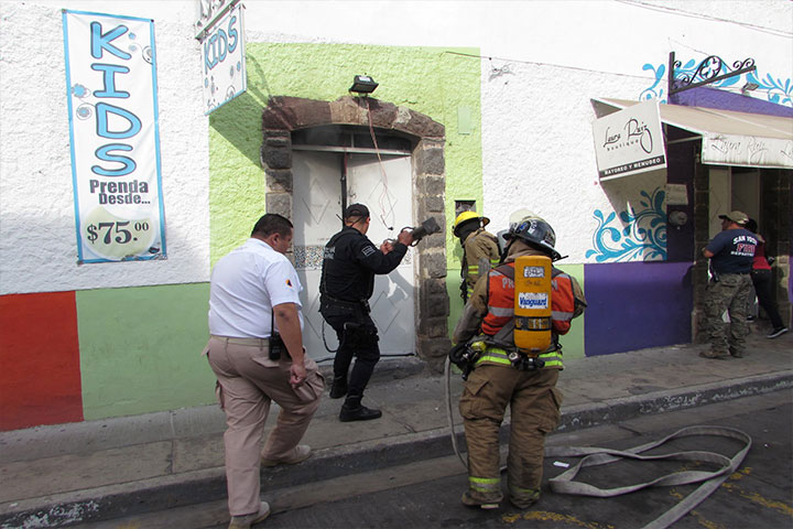El incendio en una tienda de ropa del primer cuadro de esta ciudad provocó la movilización inmediata de los Bomberos Municipales, de Protección Civil, así como de elementos de la Fuerza Ciudadana, quienes resguardaron la zona.