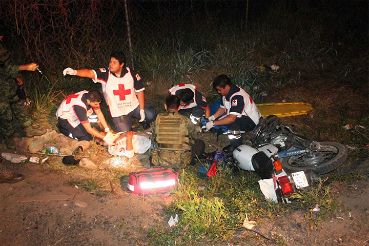 Un marino que viajaba a bordo de una moto sufrió varias lesiones al derrapar sobre un desnivel del tramo carretero La Orilla-Las Guacamayas. El percance ocurrió a las 00:30 horas del pasado domingo, a pocos metros de unas vías férreas, según datos obtenidos en el área de los hechos.