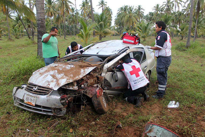Lastimado y prensado quedó un ebrio elemento de la Secretaría de Marina cuando el vehículo que manejaba volcó tras chocar contra unas palmeras del Boulevard Costero, informaron las autoridades locales. El individuo fue ayudado por los paramédicos de la Cruz Roja y llevado a un hospital de esta ciudad.