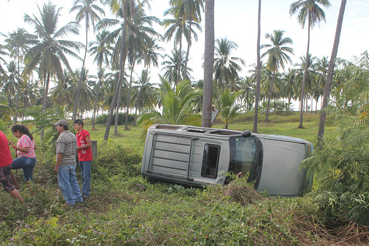 Un automovilista resultó con varios golpes al momento de que volcó y se estrelló contra una palmera del Boulevard Playero, en el tramo carretero Playa Azul-Playa Jardín, donde minutos después llegaron los paramédicos de Protección Civil, quienes auxiliaron al afectado.