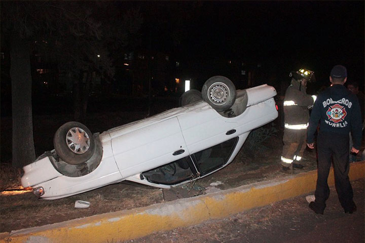Un taxi volcó sobre el Periférico República y la familia que lo ocupaba sufrió leves contusiones e inmediatamente fue atendida por elementos de Bomberos Morelia; entre los lastimados están cuatro niños, quienes se encuentran fuera de peligro y no requirieron traslado médico.