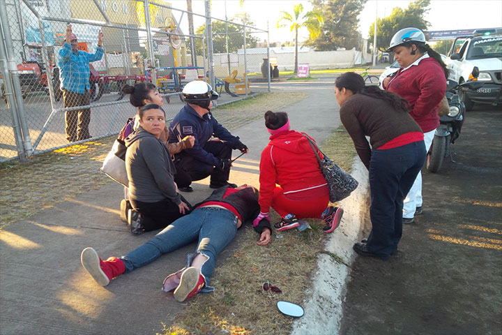 La mañana de este miércoles se registró un aparatoso accidente, donde una motociclista arrolló a un hombre que viajaba en su bicicleta resultando lesionados los dos involucrados quienes fueron trasladados al IMSS de esta ciudad.