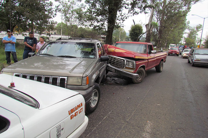 Tras una carambola automovilística resultó herido un taxista, además el percance dejó varios daños materiales y ocurrió sobre el Boulevard Industrial, a la altura de la papelera, en esta cabecera municipal de Uruapan.