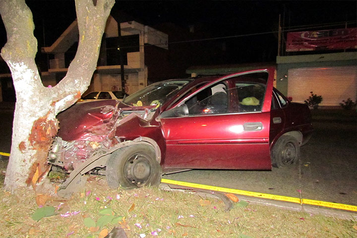 Heridas leves sufrió una profesora cuando primeramente estrelló su vehículo contra una palmera y luego lo impactó contra un árbol localizado en el camellón central de la avenida Lázaro Cárdenas ,correspondiente a esta ciudad.